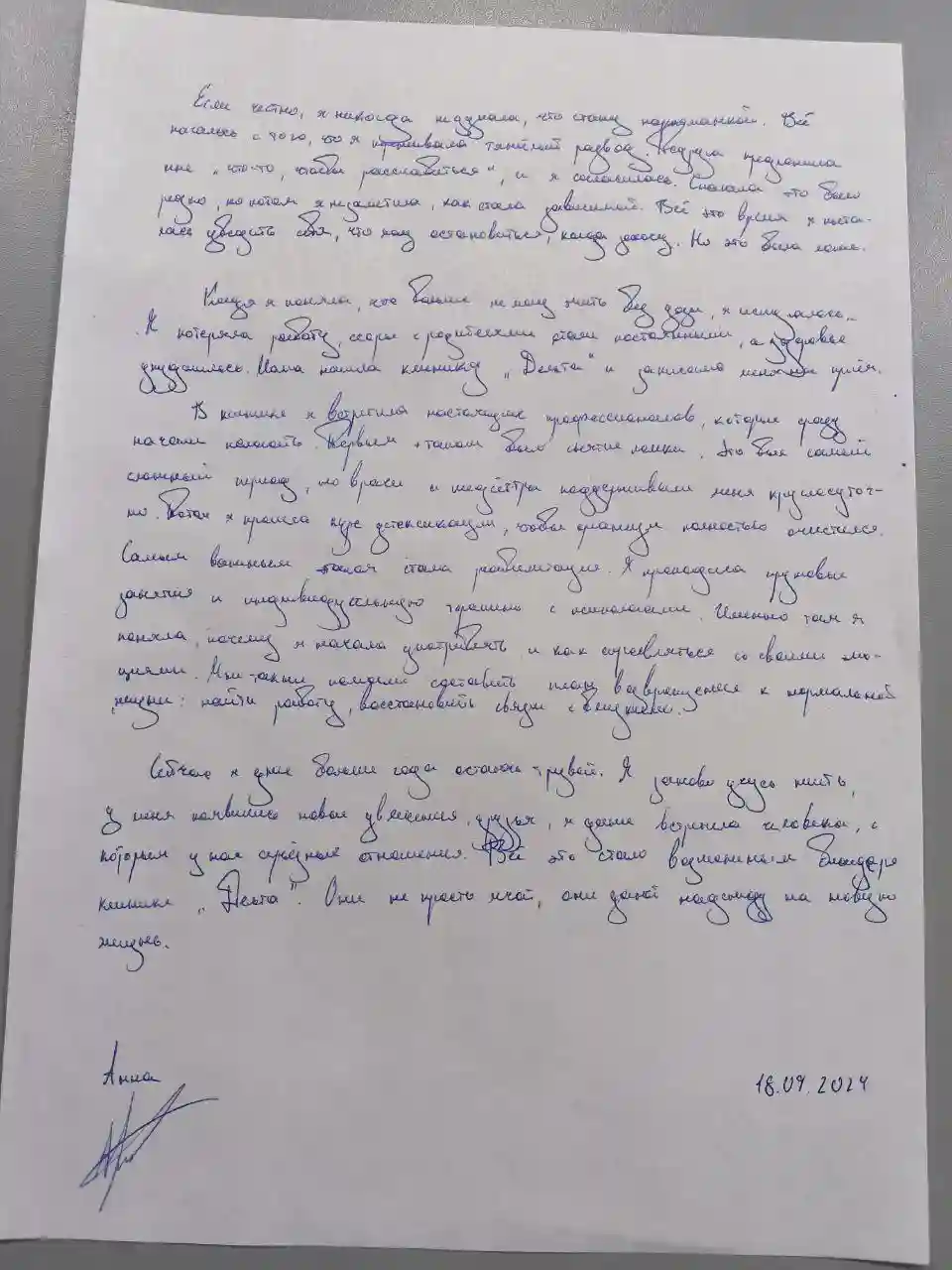 Я заново учусь жить: у меня появились новые увлечения, друзья, я даже встретила человека, с которым у нас серьёзные отношения. Всё это стало возможным благодаря клинике "Дельта". Они не просто лечат, они дают надежду на новую жизнь.